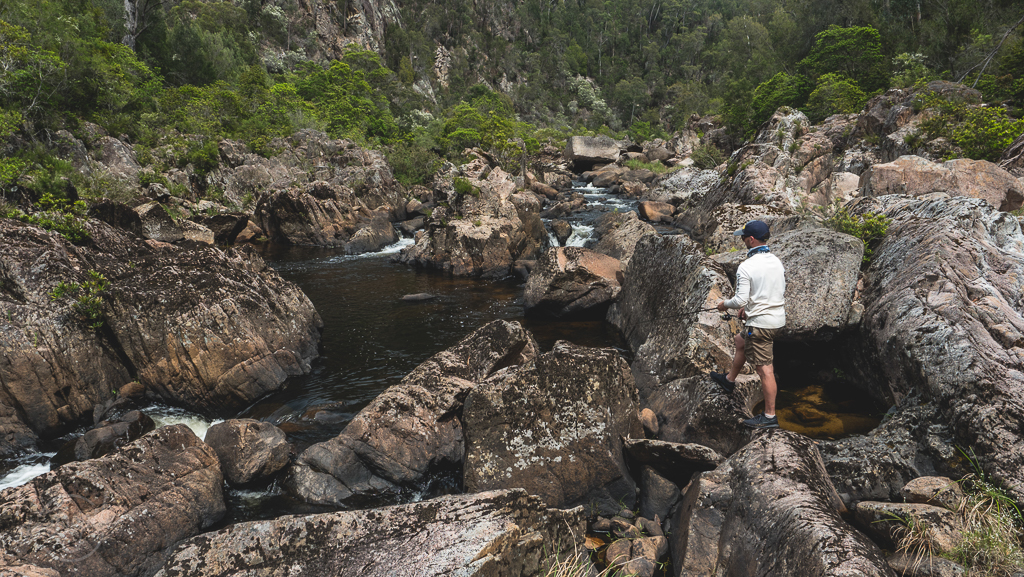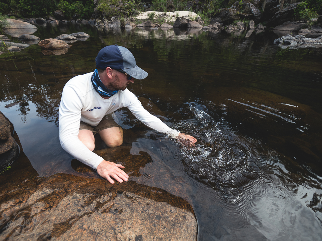 The opportunity came up for Josh and I to complete a Aussie Bass wilderness trip which we had been looking at doing for quite a while. We hiked and waded through some spectacular country, covering around 20km on foot carrying all our gear for a few days. The fishing had its ups and downs, but the scenery and the quality of the fish we did catch made up for that.