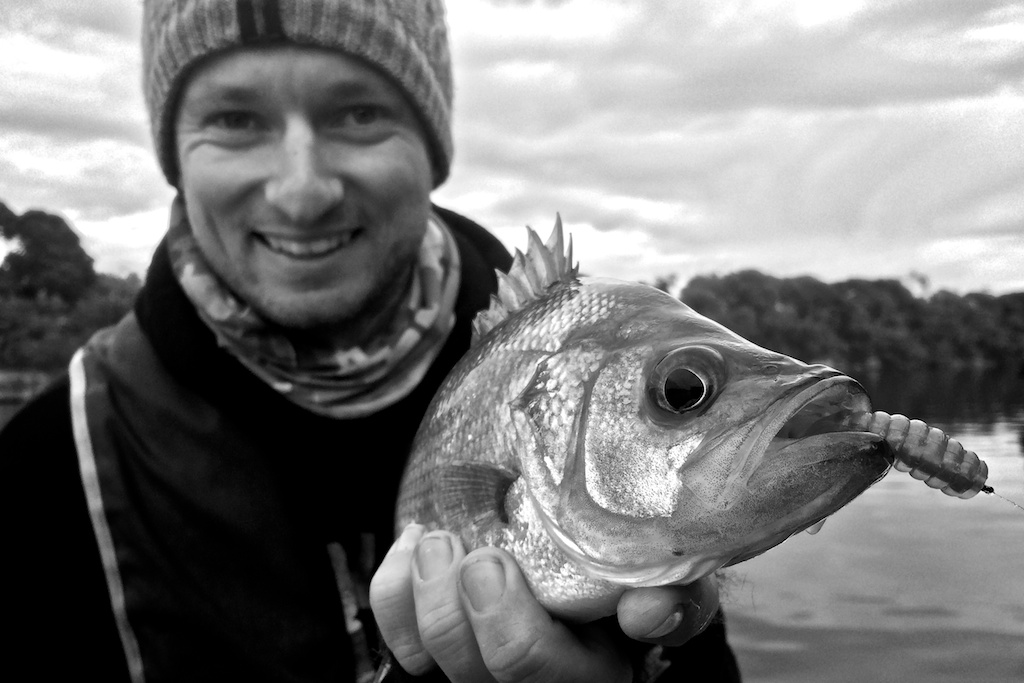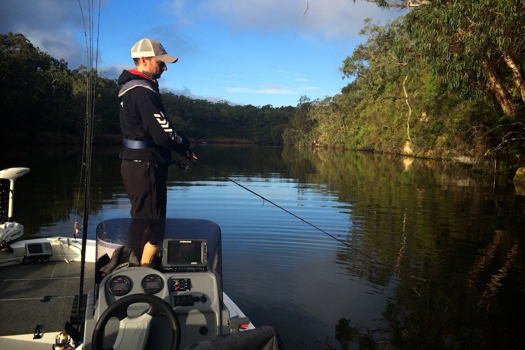 We spent the rest of the day gradually heading upstream fishing likely banks and rock walls. We were seeing heaps of fish on the sounder schooled up on the second drop off along most of the river, some of which ended up being small bream and some which were juvenile mulloway, both of which we caught after a bit of perseverance.
