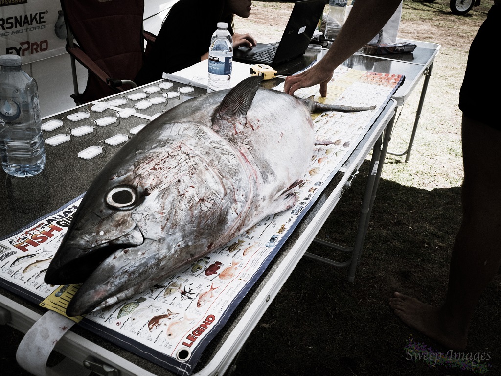 There were scattered catches of snapper and salmon from those on the reef with one entrant having already sorted through over 60 pinkies for his team, in search of some larger models. Others reported a struggle to find the fish but better conditions on the water after the squall passing. The time ticked by and the announcements over VHF revealed that there wasn’t long to go. Some of the guys began to hit the beach with reports relayed that another entrant had hooked up and was on his way to Tassie! As the entrants rolled in, it was clear that it had been a tough day’s fishing. For some, the numbers game on the reef had been the wise decision, while the gamble to go out wide for pelagics and glory made for a bittersweet tale.