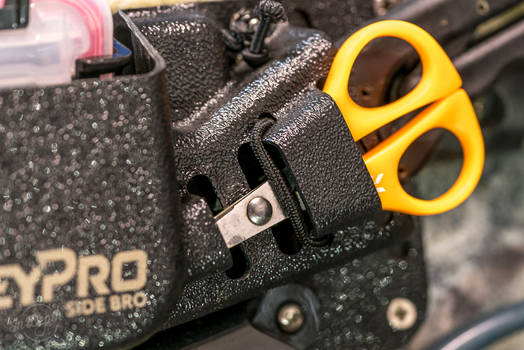 The Side Bro is specifically designed to hold one pair of scissors, one pair of pliers or Lip grips, and the Waterproof Plano Stowaway 3440 tackle box.